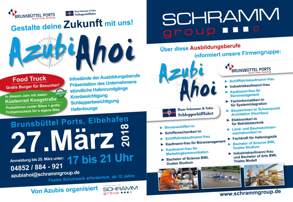 Am Dienstag, den 27. März 2018 heißt es im Elbehafen Brunsbüttel wieder "Azubi Ahoi".