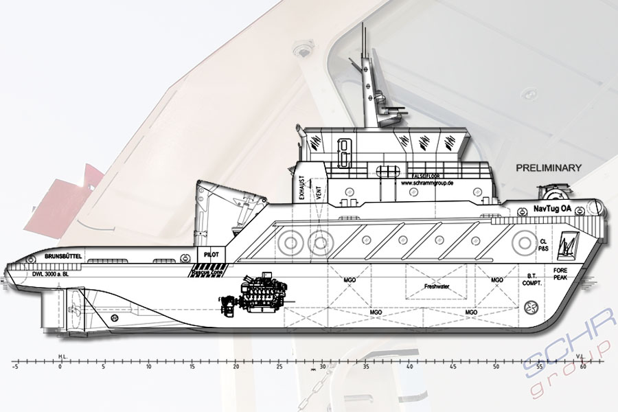 Der NavTug® OA ist ein handy-size shallow-water AHTS Schlepper mit erweiterten Unterkunftsplätzen für 12 Passagiere. Der Haupt-Arbeitsbereich ist die Unterstützung in allen Offshore und Nearshore Baustellen sowie Kabel-Verlegungs und Vermessungsarbeiten.