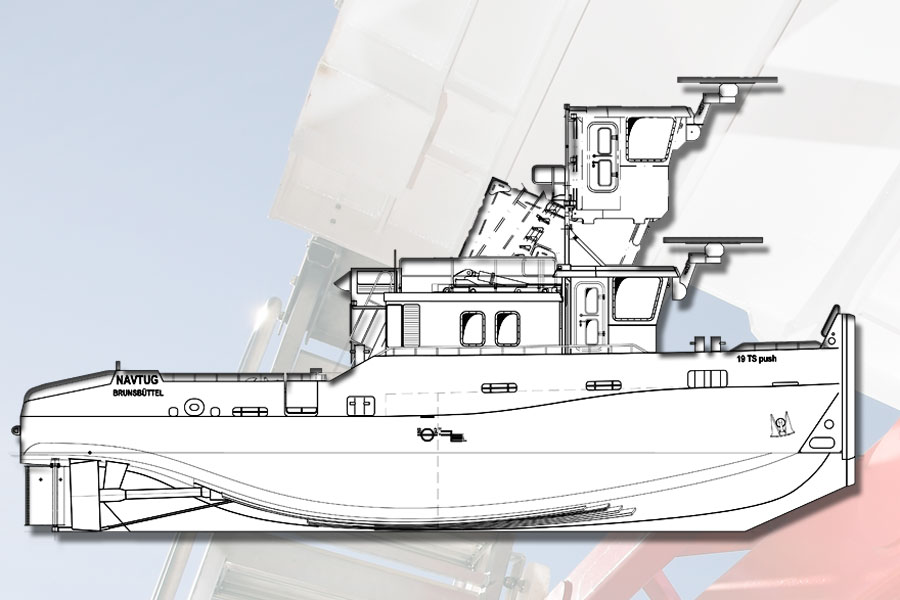 Der NavTug® 18TS push ist als kleiner, kompakter und kräftiger Mehrzweckschlepper konzipiert und hat sowohl die Zulassung als Seeschiff unter GL-Klasse als auch als Binnenschiff.